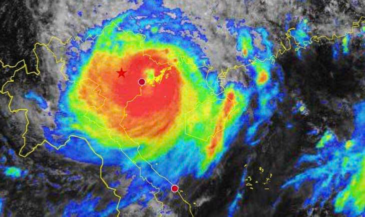 Lúc 13h,bão đã đổ bộ TP Móng Cái của tỉnh Quảng Ninh,sức gió hiện tại là 12. Ảnh: Trung tâm Dự báo Khí tượng Thủy văn quốc gia