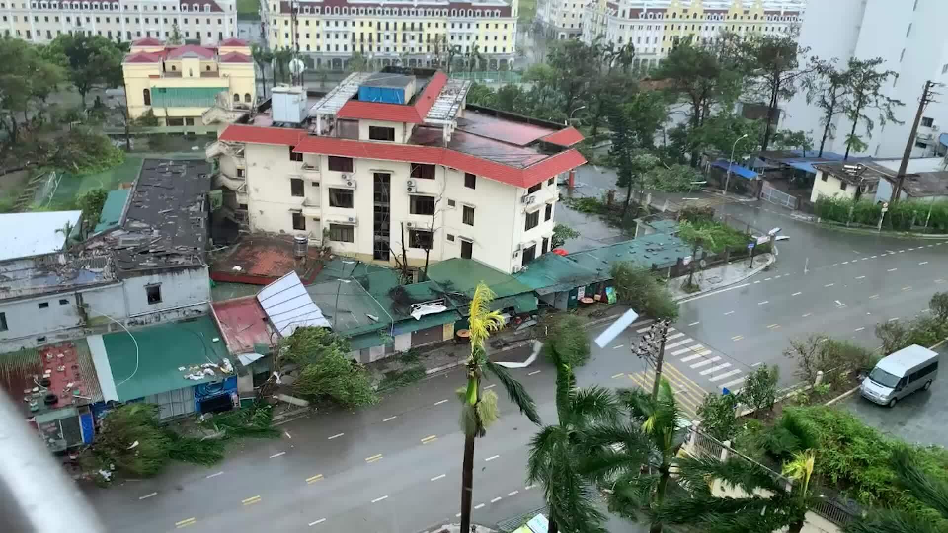 Gió bão cuốn bay mái tôn ở TP Hạ Long,tỉnh Quảng Ninh. Video: Huy Mạnh