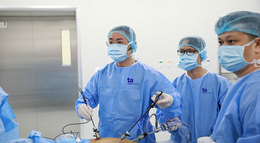 Các bác sĩ thực hiện một ca phẫu thuật nội soi. Ảnh: Bệnh viện Đa khoa Tâm Anh