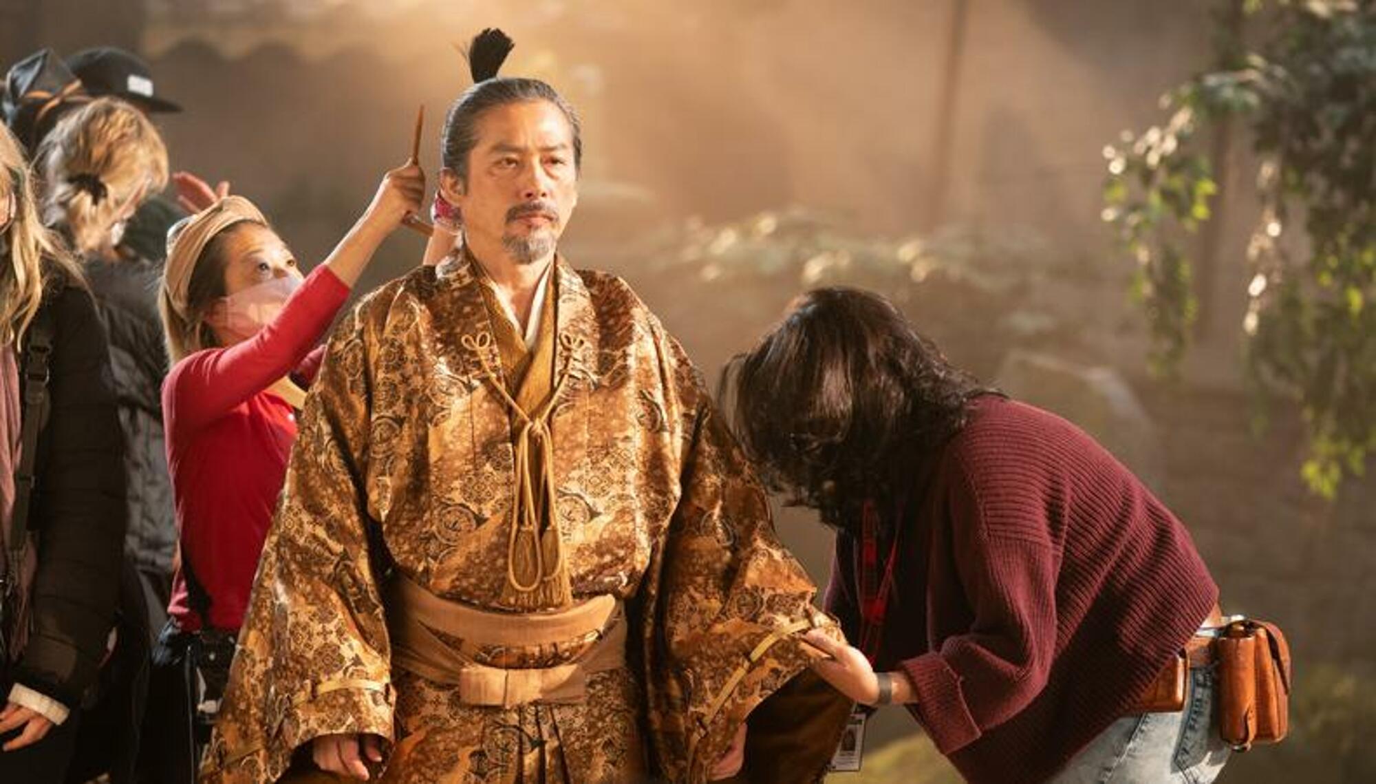 Êkíp chuẩn bị cho tài tử Hiroyuki Sanada trên phim trường "Shogun". Ảnh: FX