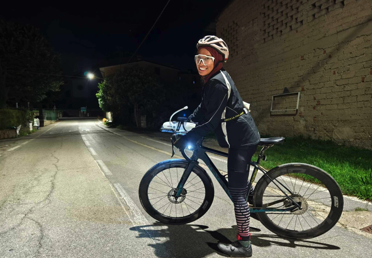 Thanh Vũ trong lúc thực hiện phần thi đạp xe tại Triple Deca Continous. Ảnh: Facebook/Thanh Vũ