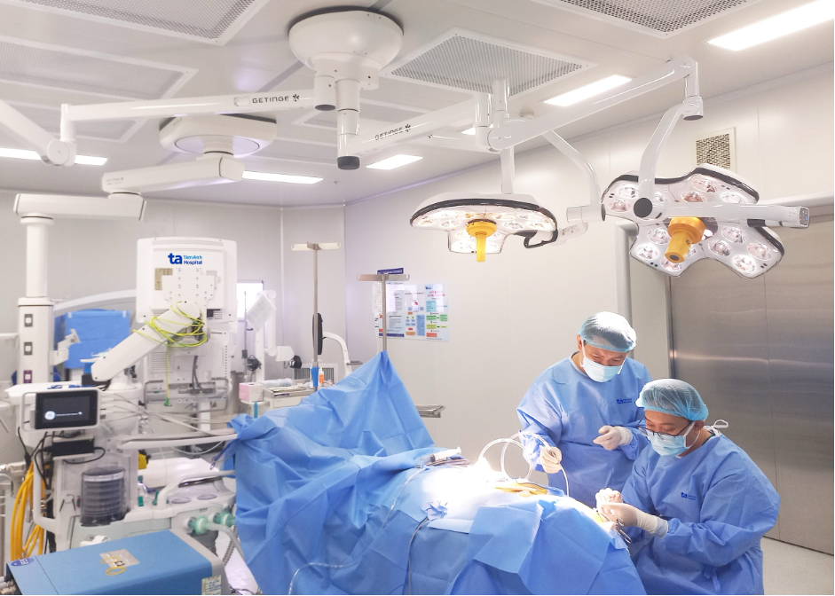 Các bác sĩ phẫu thuật dẫn lưu dịch não tủy u nang màng nhện xuống khoang phúc mạc trong ổ bụng người bệnh. Ảnh minh họa: Bệnh viện Đa khoa Tâm Anh