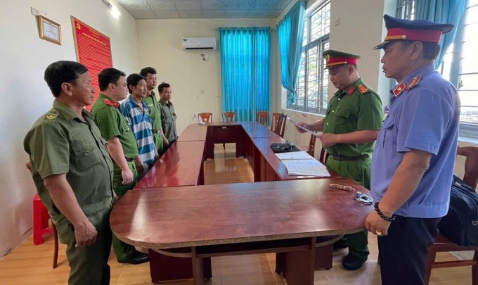 Cơ quan điều tra thi hành lệnh đối với Hương. Ảnh: Công an Kiên Giang