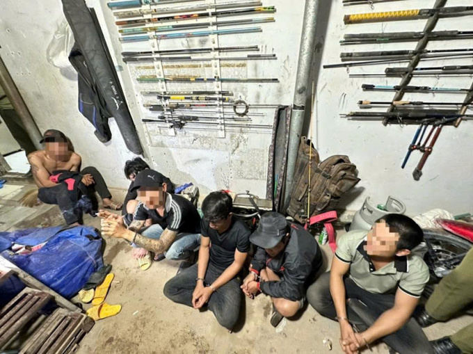 Nhóm thanh niên bị phát hiện tổ chức sử dụng ma túy tại kho "hàng nóng". Ảnh: Thái Hà