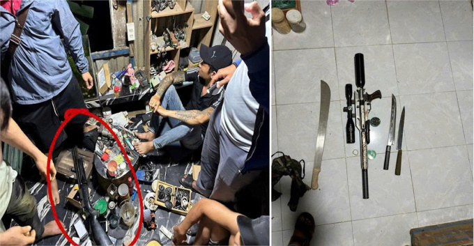 Nhiều súng,đạn và mã tấu được tìm thấy trong nhà Tài. Ảnh: Thái Hà