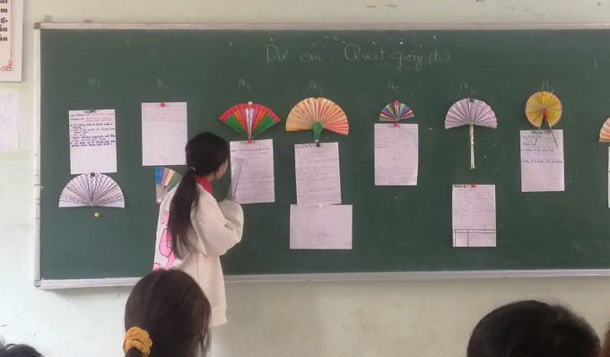 Học sinh học Toán qua dự án quạt giấy ứng dụng STEM. Ảnh: Nhân vật cung cấp