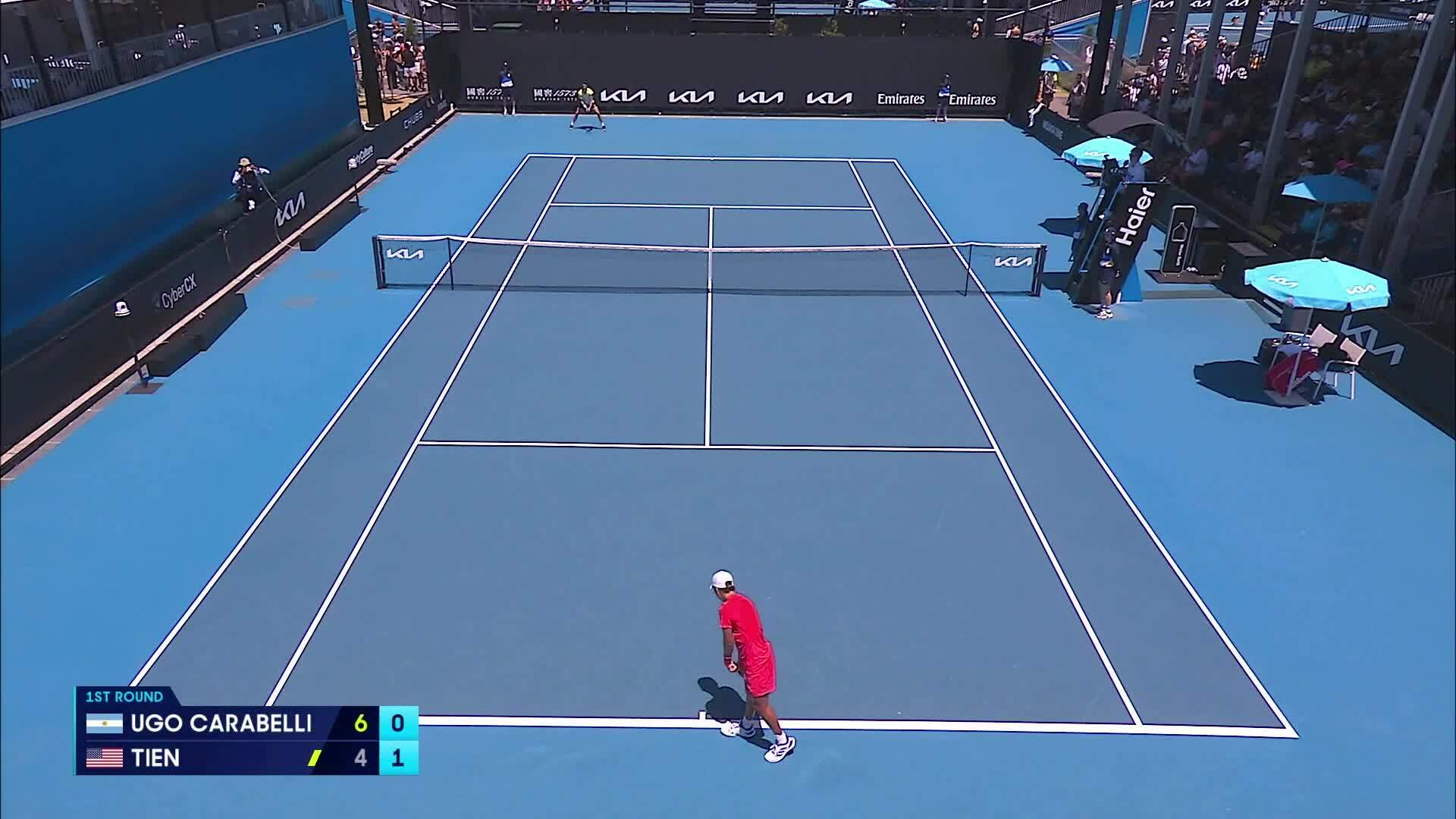 Vòng hai Australia Mở rộng sẽ chứng kiến cái tên đặc biệt: Learner Tien - người sẽ đối đầu với hạt giống số năm Daniil Medvedev. Tay vợt Mỹ mới đây đánh bại Camilo Ugo Carabelli với tỷ số 4-6,7-6,6-3,5-7,6-4. Sau năm set kịch tính,Tien ghi 44 điểm winner và bảy lần thắng game đỡ bóng. Phong độ này mang về thắng lợi đầu tiên tại Grand Slam cho tay vợt xếp thứ 121 thế giới.