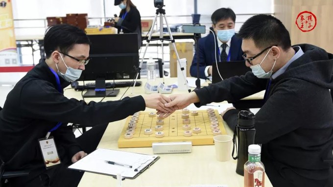 Triệu Hâm Hâm (trái) gặp Vương Khuếch trong trận chung kết cờ tướng Trung Quốc tháng 1/2021. Ảnh: Tượng Kỳ Vương Tử