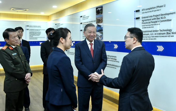 Tổng Bí thư mong muốn Amkor tiếp tục có sự phát triển trong lĩnh vực sản xuất chip,bán dẫn. Chính sách của Việt Nam là luôn ưu tiên,ủng hộ cải thiện các điều kiện để các doanh nghiệp đầu tư,kinh doanh có sự lan toả.