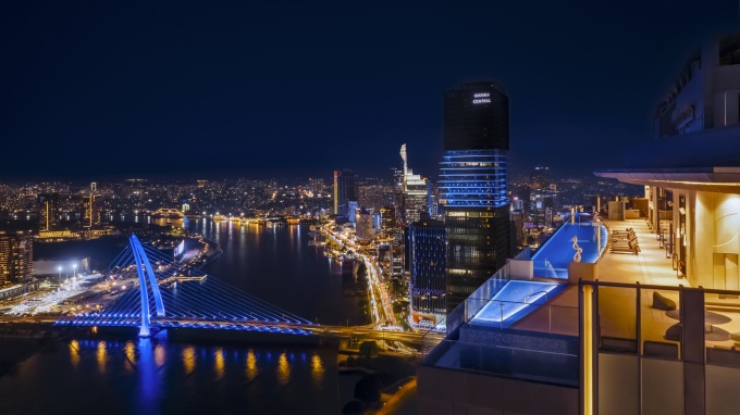 Hồ bơi trên tầng 46 với tầm nhìn ôm trọn thành phố. Ảnh: Masterise Homes