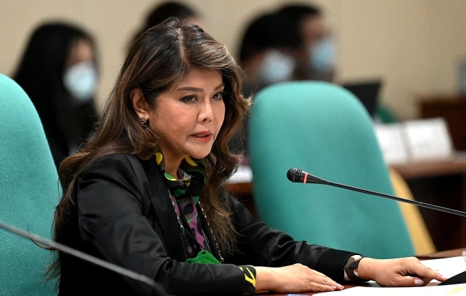 Thượng nghị sĩ Philippines Imee Marcos chủ trì một buổi điều trần tại Ủy ban Đối Ngoại Thượng viện tại Manila tháng 6/2023. Ảnh: AFP
