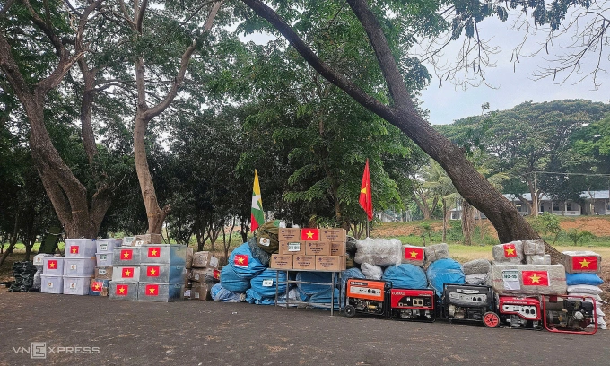 Hàng hóa đoàn cứu hộ Việt Nam tặng Myanmar. Ảnh: Song Hương