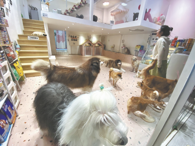Những chú chó tại một quán cà phê ở Côn Minh,tỉnh Vân Nam,chào đón khách ghé thăm hồi tháng 2/2024. Ảnh: Nhật báo Trung Quốc