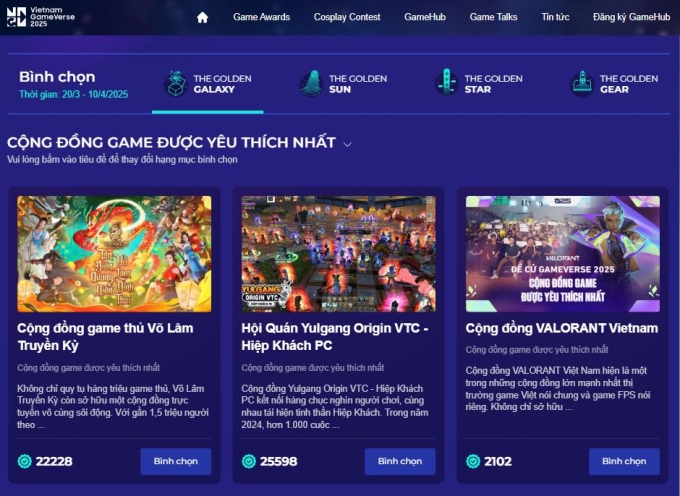 Cộng đồng game được yêu thích hút hàng nghìn bình chọn ở mỗi đề cử. Ảnh chụp màn hình