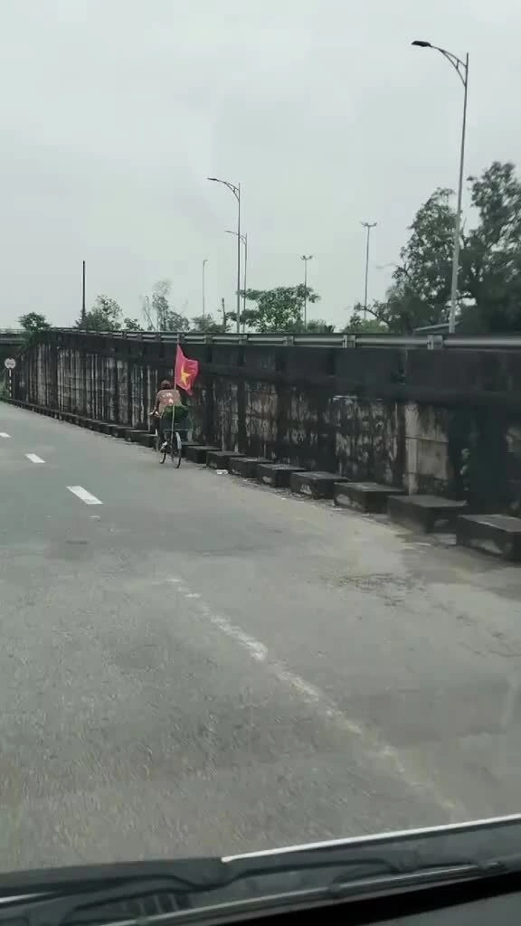 Video được một tài xế đi đường ở Huế tình cờ gặp Quang Hà ghi lại trong chuyến hành trình anh đạp xe xuyên Việt,ngày 13/4. Nguồn: Ninh Thiện Nam