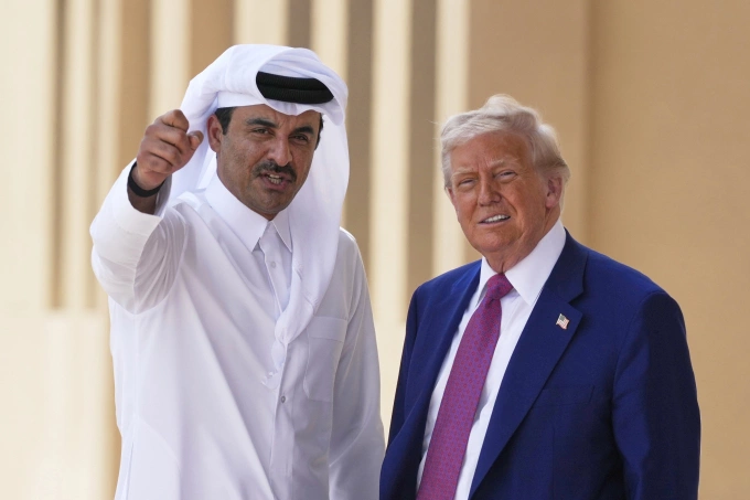 Quốc vương Qatar Tamim bin Hamad Al Thani và Tổng thống Mỹ Donald Trump tại Doha ngày 15/5. Ảnh: AP