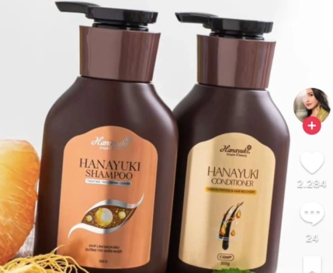 Cặp dầu gội,dầu xả Hanayuki được Đoàn Di Băng quảng cáo. Ảnh: Chụp màn hình