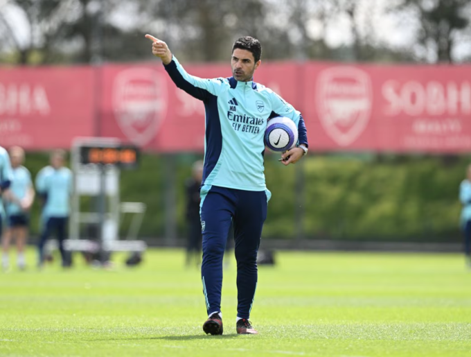 HLV Arteta chỉ đạo buổi tập của Arsenal tại trung tâm huấn luyện Sobha Realty ngày 22/4. Ảnh: Arsenal FC