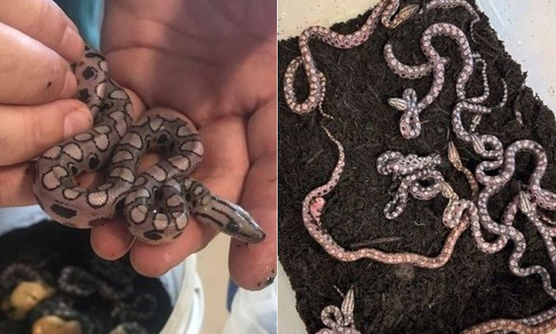 Đàn con non của trăn cầu vồng Brazil 13 tuổi. Ảnh: Cao đẳng Thành phố Portsmouth